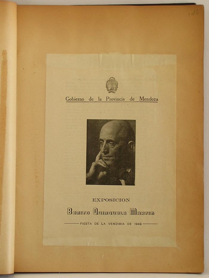 Bibliorato compuesto por artículos y fotografías con notas autógrafas de Benito Quinquela Martín que permite reconstruir su agenda expositiva en Mendoza.