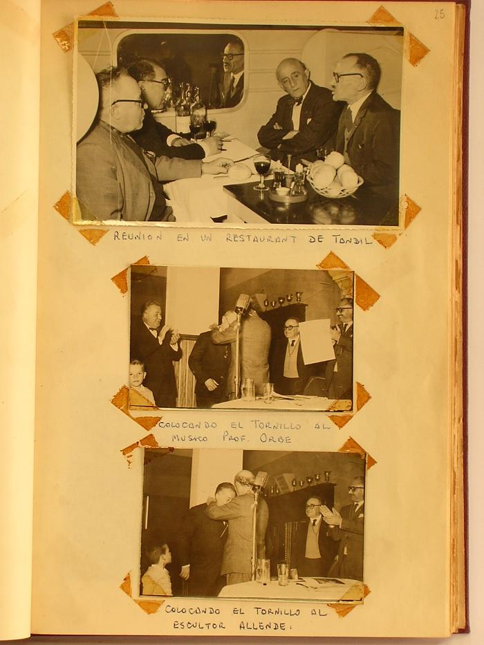 Bibliorato compuesto por artículos y fotografías con notas autógrafas de Benito Quinquela Martín que permite reconstruir su agenda expositiva así también como una lista de obras vendidas. En el lomo interno se observa un adhesivo de reconocimiento al artista dorado por parte de la cooperativa de la Academia de Bellas Artes (2/9/1958). No incluye un índice preexistente.