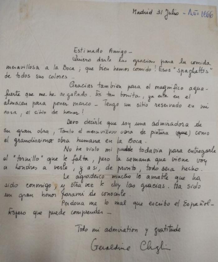 Carta de Geraldine Chaplin