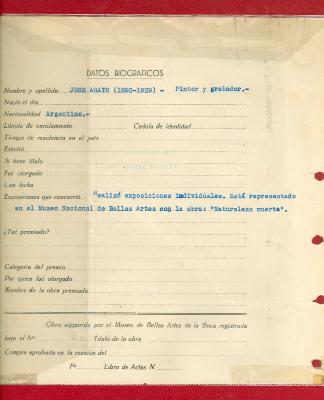 Museo de Bellas Artes de La Boca de Artistas Argentinos Benito Quinquela Martín 🡢 Fondo "Museo Benito Quinquela Martín" 🡢 Legajos de Autor