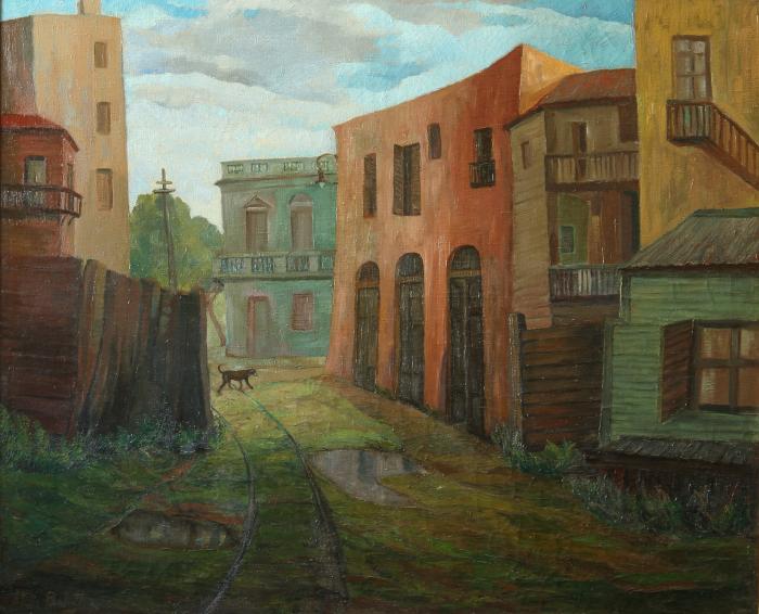 Las particularidades de los conventillos de La Boca, como los que se aprecian en esta pintura, residen no solamente en cuestiones materiales sino sobre todo simbólicas, ya que estas viviendas fueron el caldo de cultivo donde se cocinó la personalidad del vecindario. Actualmente, el conventillo de chapa y madera, pintado de variados colores, es la marca registrada de la zona, y una de las razones porque las que día a día se reciben miles de visitantes de todas partes del mundo.